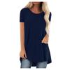 Frauen Mode Plus Größe Rundhals Kurzarm Solide Farben Lange T-shirt Tops