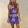 Damenmode Sommer Unabhängigkeitstag Bedrucktes Lockeres Ärmelloses Taschen V-Ausschnitt Kleid