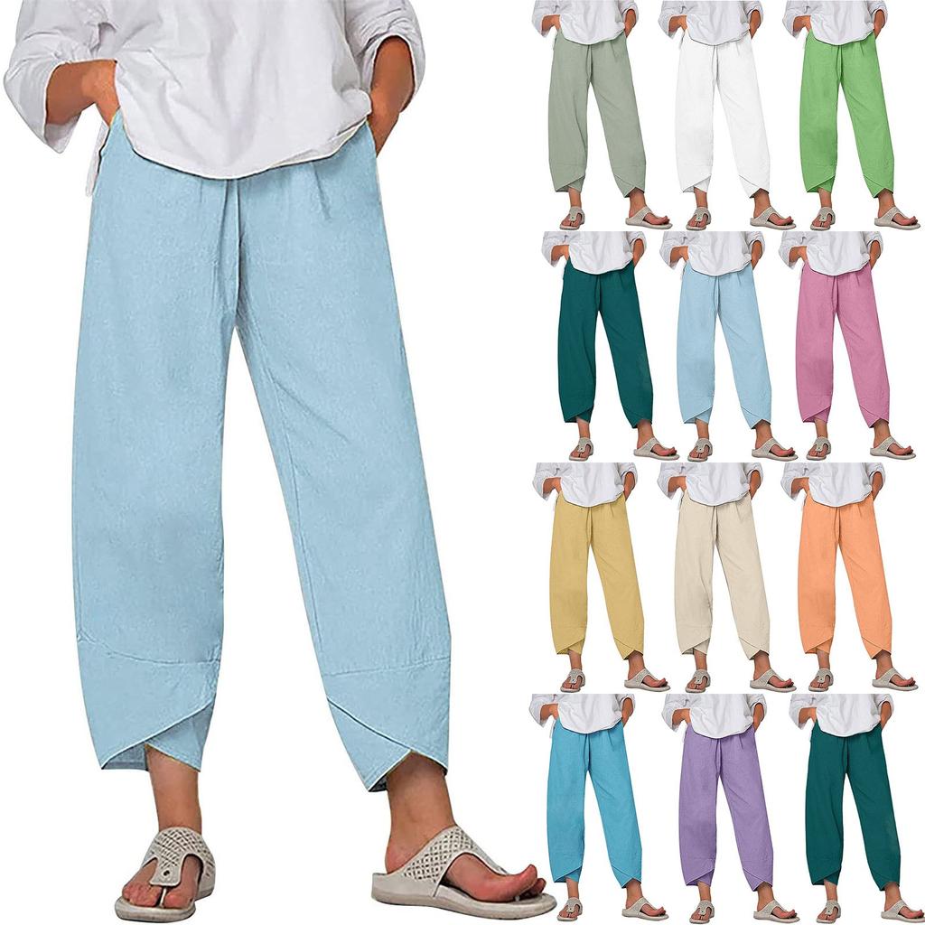 Lässige, lockere, lockere, weit geschnittene Hose aus Baumwolle und Leinen für Damen im Sommer