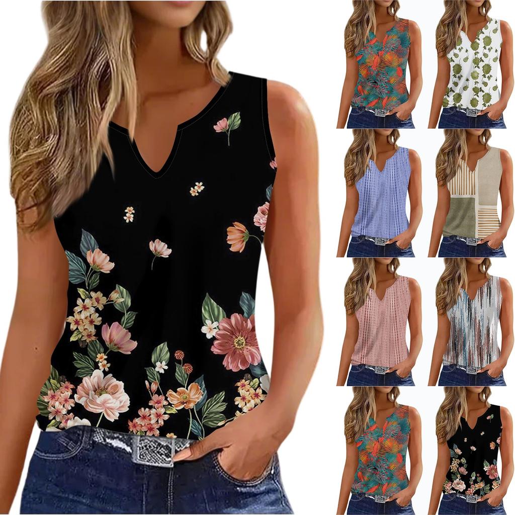 Damenweste Mode Lässig Ärmellos Kleiner V-Ausschnitt Retro Bedrucktes T-Shirt Oberbekleidung Weste Sexy