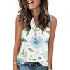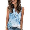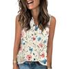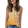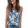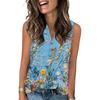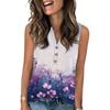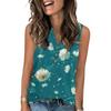 Damen Casual Mode Sommer Tanktop mit Blumendruck V-Ausschnitt Ärmellos Knopfleiste Top