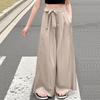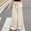 Summer Solid-color Ice Silk Wide-leg Pants, Casual Straight-leg Pants For Middle-aged Children