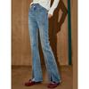 Damen Modetrend Slim Jeans mit Frontschlitz und weitem Bein Stretch