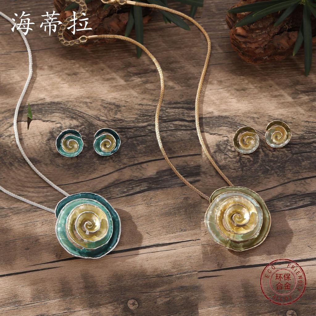 Neuer Emaillefarbverlauf Unsterbliche Blume Ohrstecker Anhänger Set, Damen High-End Bankett Ohrringe Halskette
