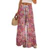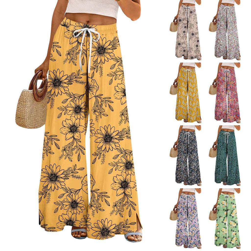 Damen Sommer Boho Palazzo Hose Hohe Taille Weites Bein Blumendruck Freizeithose Mit Taschen