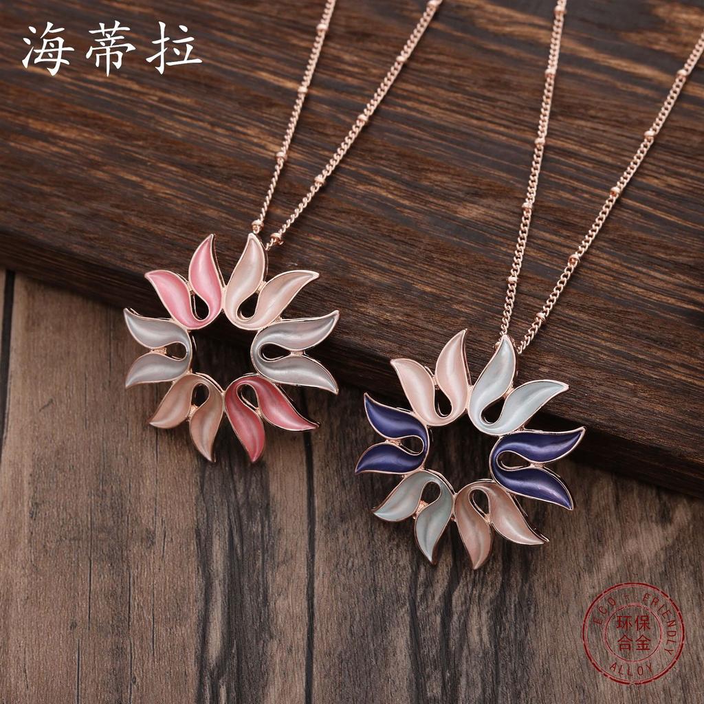 New color painting oil hollow sunflower pendant, women's personality versatile geometric flower necklace