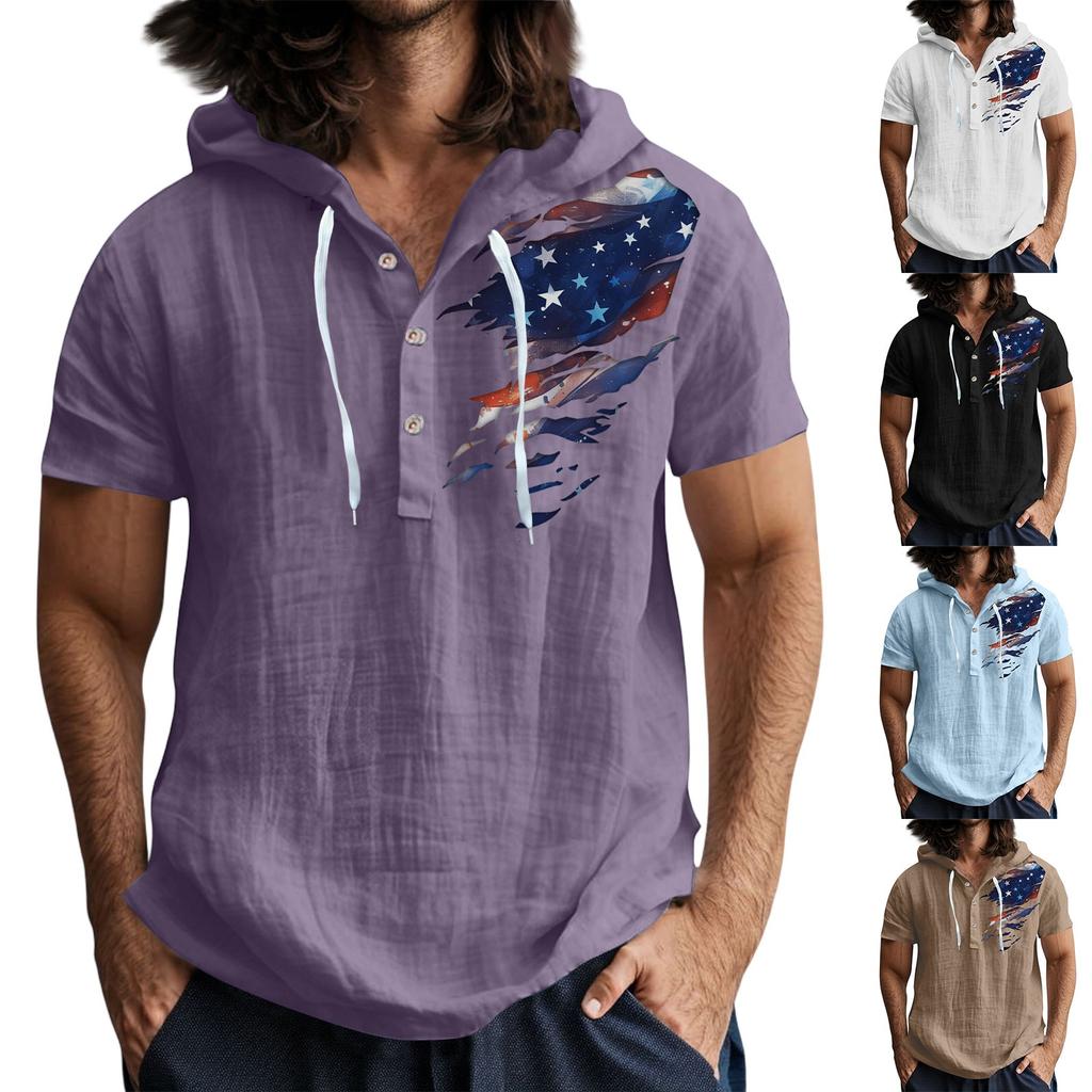 Lässiges T-Shirt mit kurzen Ärmeln und Kapuze für Herren mit Knopfleiste und offenem Hals