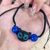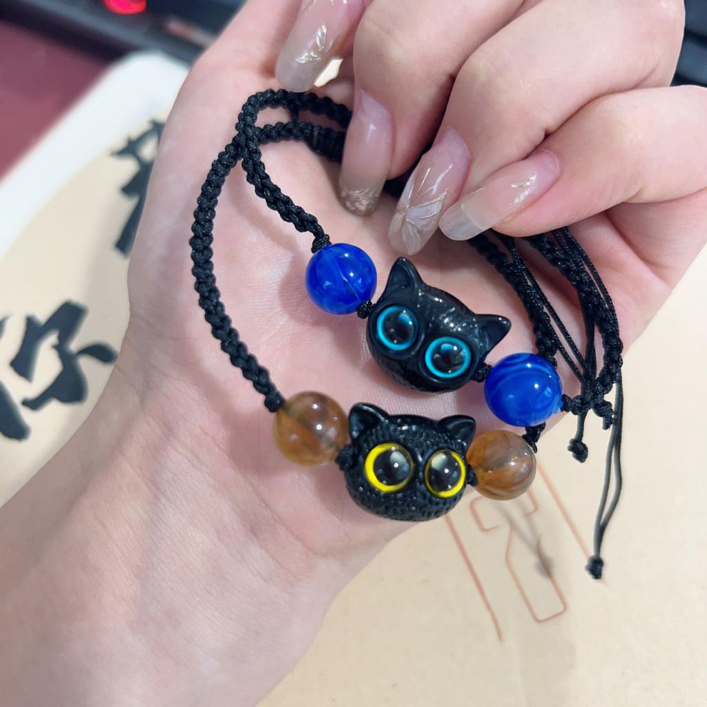 Sweet and cool little meow ins niche design black sandalwood kitten woven bracelet couple gift monster