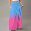 Damen Lässig Freizeit Faltbar Farbverlauf Druck Hohe Taille Mit Tasche Drapierter Entspannter Langer Maxi Rock