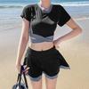 Damen Neoprenanzug Konservativer Mode Kurzarm Surfanzug Reißverschluss Einteiliger Badeanzug