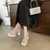 Transparente Wort-Slipper mit quadratischer Spitze und dicker Sohle für Damen, Sommer, dicker Absatz, wasserdicht, Tisch, kleiner Mann, hohe Absätze