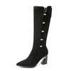Aber kniehohe Stiefel mit Absatz Damen Herbst und Winter neue Mode-Stiefel mit dickem Absatz Reißverschluss hinten Metallschnalle vielseitige Stiefel