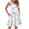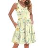Damen Sommer Mode Lässig V-Ausschnitt Plissee Steppnaht Kleiner Blumendruck Ärmellos Westenkleid Mit Taschen