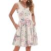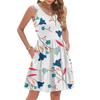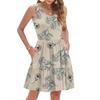 Damen Sommer Mode Lässig V-Ausschnitt Plissee Steppnaht Kleiner Blumendruck Ärmellos Westenkleid Mit Taschen