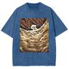 Weißes Cartoon Teddy Hund Print Damen T-Shirt Washed Denim Oversized Unisex Kurzarm Niedlich Mode Liebling Vintage Top