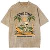 Damen T-Shirt Gewaschener Denim Stoff Übergroß Totenkopf Print Rundhalsausschnitt Locker Neutral Kurzarm Hübsches Cooles Oberteil