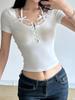 Neckholder-Spitzenbesatz, Schleife, süßes schwarzes Y2K-T-Shirt für Damen mit Knopfleiste, schmale Kurzarm-T-Shirts in Weiß, süße Balletcore-Kleidung