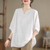 Summer Retro Cotton Linen Blouse Top for Women Loose Fitting Pullover Artistic Retro Casual Short Sleeved Shirts