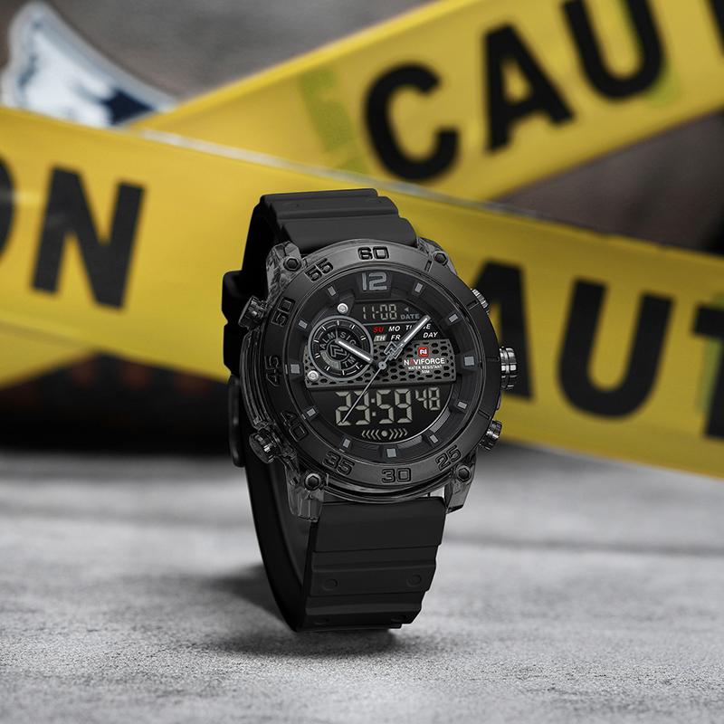 NAVIFORCE Men's Sports Watch Quartz Movement LCD Digital Watch Date Day Chronograph Waterproof Silicone Strap Boys Multifunctional Watch NF6104