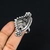 925 Sterling Silver Trillion Silver Leaf Jasper Gemstone New Promise Flower Ring