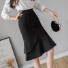 2022 Eleganter Rüschen-Bodycon-Pendlerrock mit Reißverschluss, Übergröße, Elastische Passform