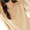 Erleben Sie mühelosen Stil mit diesem eleganten Oberteil aus einer hochwertigen Mischung aus Baumwolle und Leinen.. Mit einem schicken V-Ausschnitt und vielseitigen halben Ärmeln ist dieses Knopfleistentop perfekt für jeden Anlass und bietet Komfort und Atmungsaktivität für den ganzen Tag.