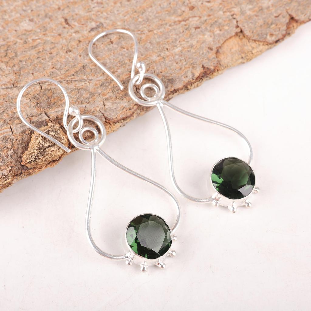 Schmuck mit grünem Turmalin-Edelstein, 925er Sterlingsilber-Ohrring, Erstaunlicher Turmalin-Ohrring, Handgefertigter Designerschmuck für Frauen