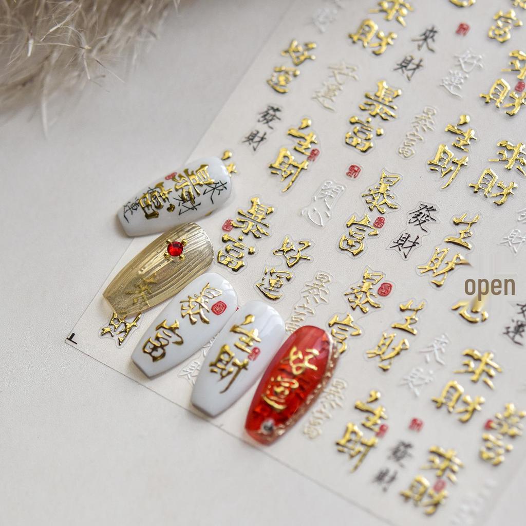 Tomoni New Year Nail Stickers: Good Luck & Wealth Hot Stamping, 2 Packs