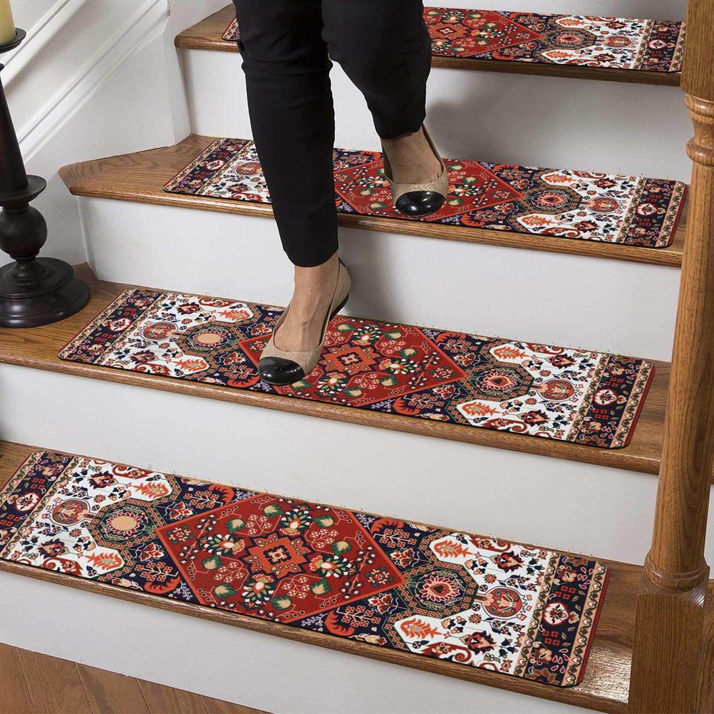 Nordischer Druck Rutschfeste Treppenmatte, Fleckenabweisend, Wasserabsorbierend, Schnelltrocknende Indoor-Stufenmatte