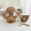 Kinder Strohhut Set mit Schultergurten Niedlicher Blumenhut und Tragetasche, Mädchen Baby 2 Stück Kinder Sonnenschutz Accessoires