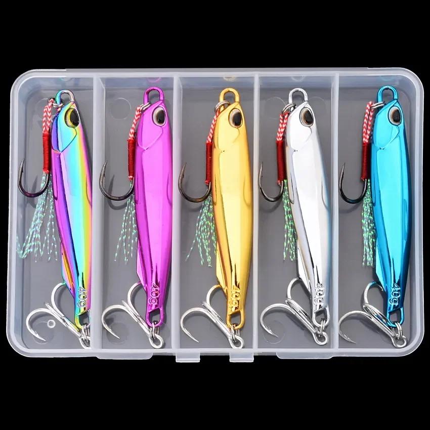 5PCS Metal Cast Jig Spoon 20/40/60g Shore Casting Jigging Fish Sea Bass Fishing Lure Artificial Bait Tackle Box