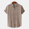 Herren Sommer Casual Striped Print Top Locker Bequemes Revers Kurzarmhemd