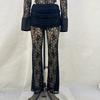 Sexy Spitze Tiefes V Langärmliges Top Slim Perspektive Hohe Taille Schlaghose Damenanzug