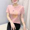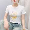 Classic Women's Shiny Cartoon Swan Hot Diamonds O-Neck T-Shirt Summer Office Lady Cotton Tops Clothes New Fashion Flower Fairy Tees