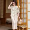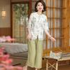 Sommer Baumwoll-Leinen Stilvolles Sommer Kurzarm Damenhemd für Mütter mittleren Alters