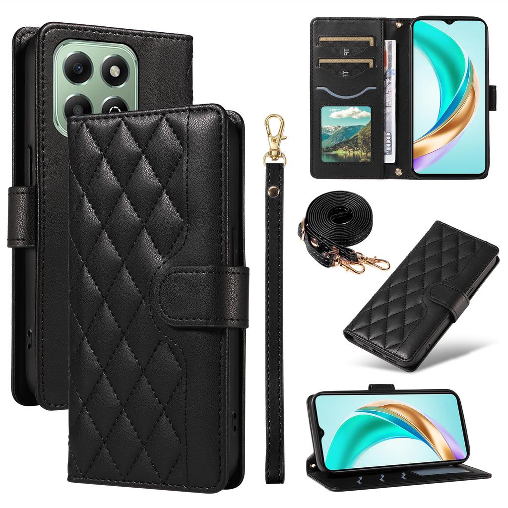 Für Honor X6b 4G Hülle Brieftasche Rauten Leder Handyhülle mit Schultergurt, Handschlaufe
