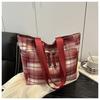 The new fresh and literary plaid is fashionable, simple and large-capacity. Students are casual in class. Portable tote shoulder bag.
