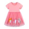 Dieses entzückende Mädchenkleid vereint europäischen und amerikanischen Stil mit einem Hauch von Verspieltheit und ziert eine charmante Cartoon-Einhorn-Stickerei.. Aus einem weichen Strickmaterial gefertigt, sorgt es für Komfort und Atmungsaktivität an Sommertagen.. Das Mesh-Design fügt einen zarten, prinzessinnenhaften Flair hinzu, der jedes Mädchen verzaubern wird.. Perfekt sowohl für lässige Ausflüge als auch für besondere Anlässe, wird dieses Kleid Einhorn-Liebhaber und modebewusste junge Mädchen gleichermaßen begeistern.