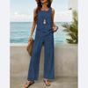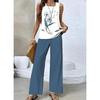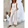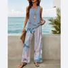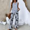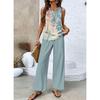 Neuer Stil Texturiert Pflanzenstreifen-Print Quadratischer Ausschnitt Doppellagiges Ärmelloses Weste Gerade Hose Freizeit Bequemer Westenanzug