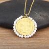 Nidin Neues Kreatives Design Runde Form Eingelegte Perlen Charm Anhänger Halskette Für Damen Herren Religiöser Stil Schmuckzubehör Geschenk