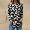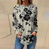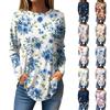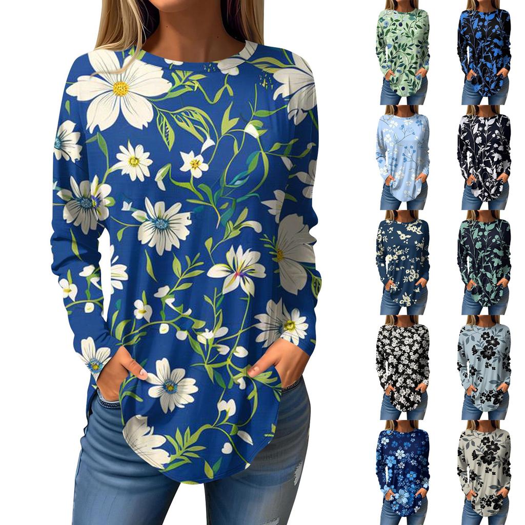 Women's Fashion Casual Round Neck Floral Long Sleeve T-shirt Pullover Long Sleeve Top