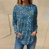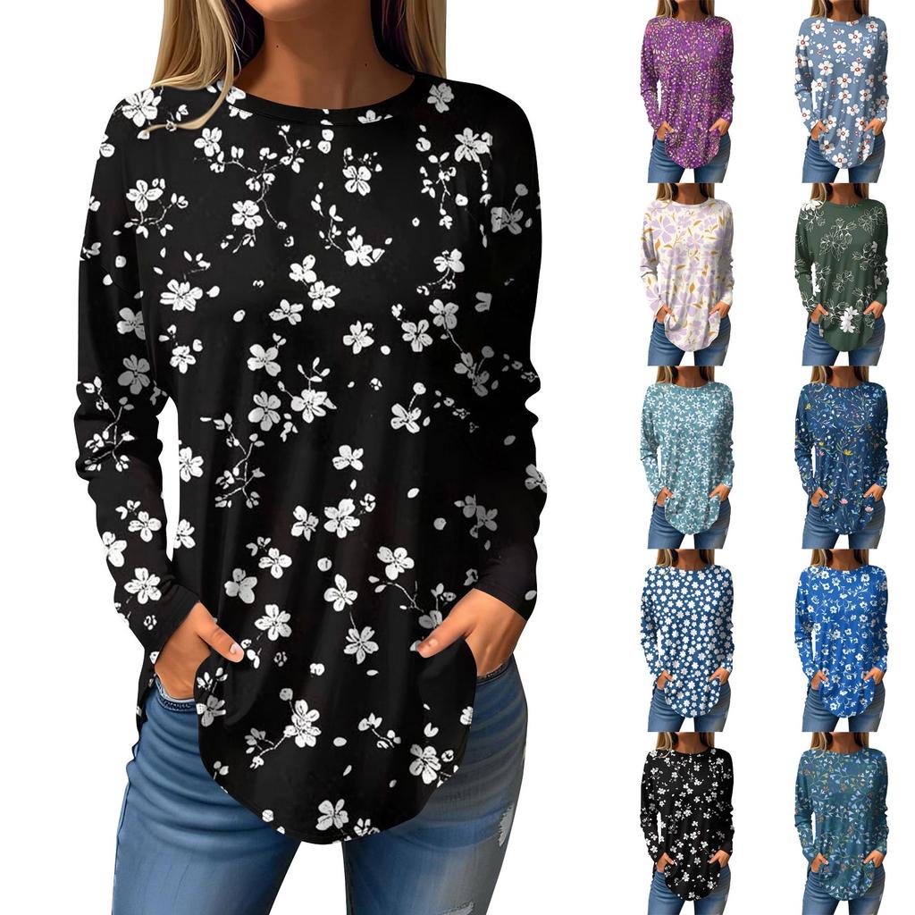 Women's Fashion Casual Round Neck Floral Long Sleeve T-shirt Pullover Long Sleeve Top