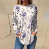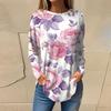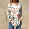 Women's Fashion Casual Round Neck Floral Long Sleeve T-shirt Pullover Long Sleeve Top