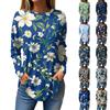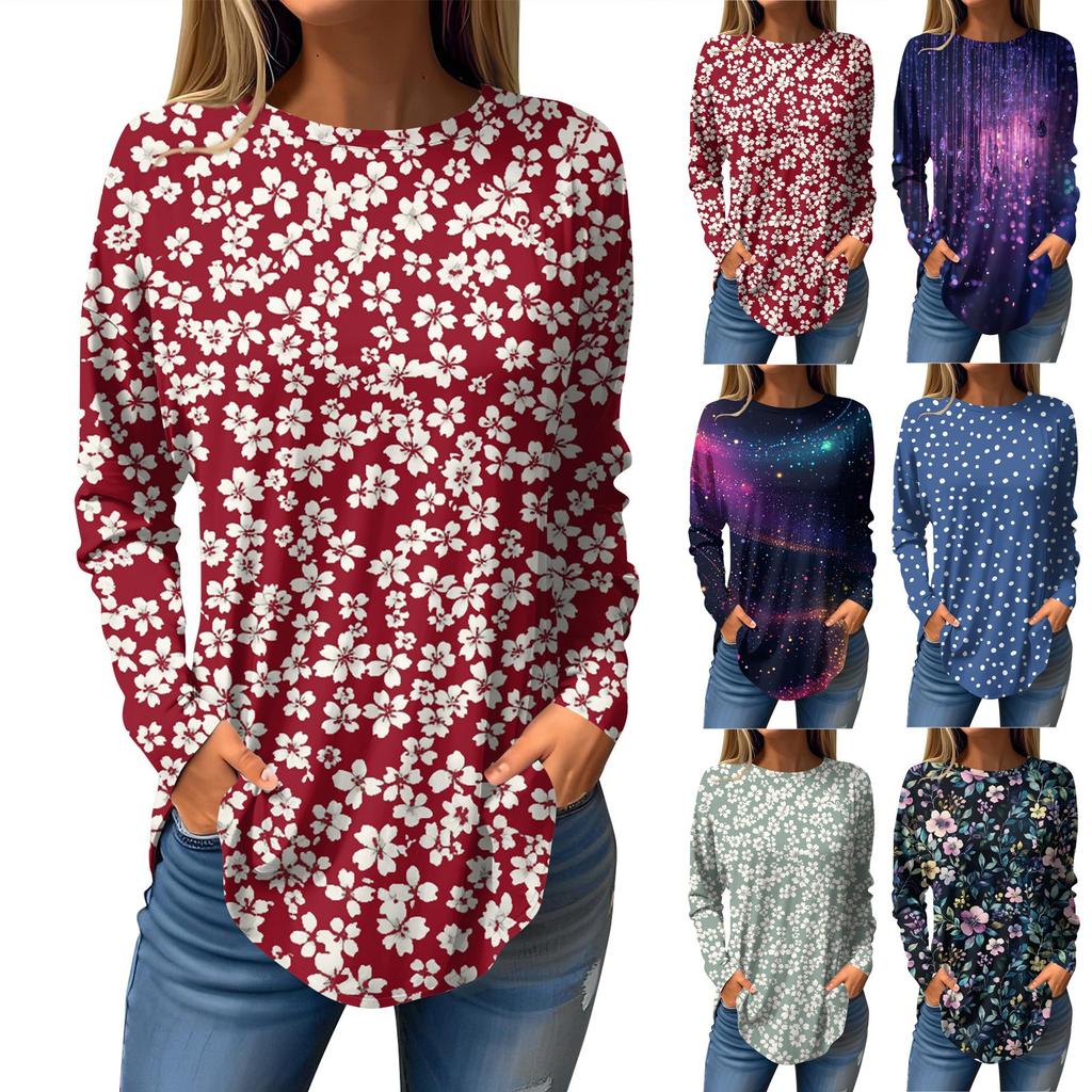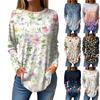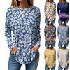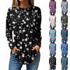 Women's Loose Casual Printed Round Neck Long Sleeved T Shirt Top Pullover Long Sleeved Sweatshirt