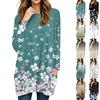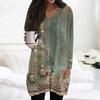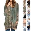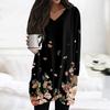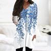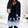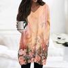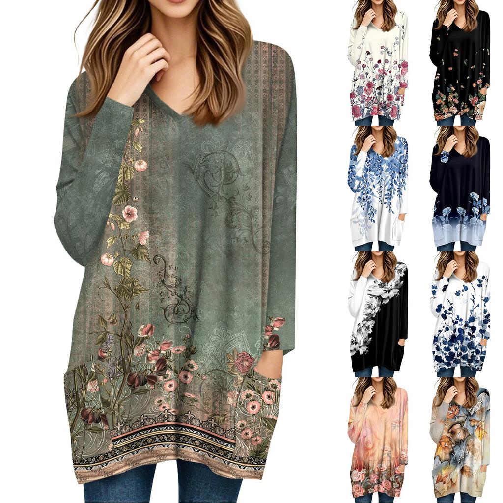 Damen Oberteile V-Ausschnitt Langarm Blusen Lässige Mittellange Hemden Mode Druck Tunika Oberteile Mit Taschen