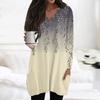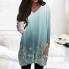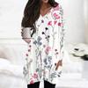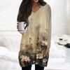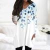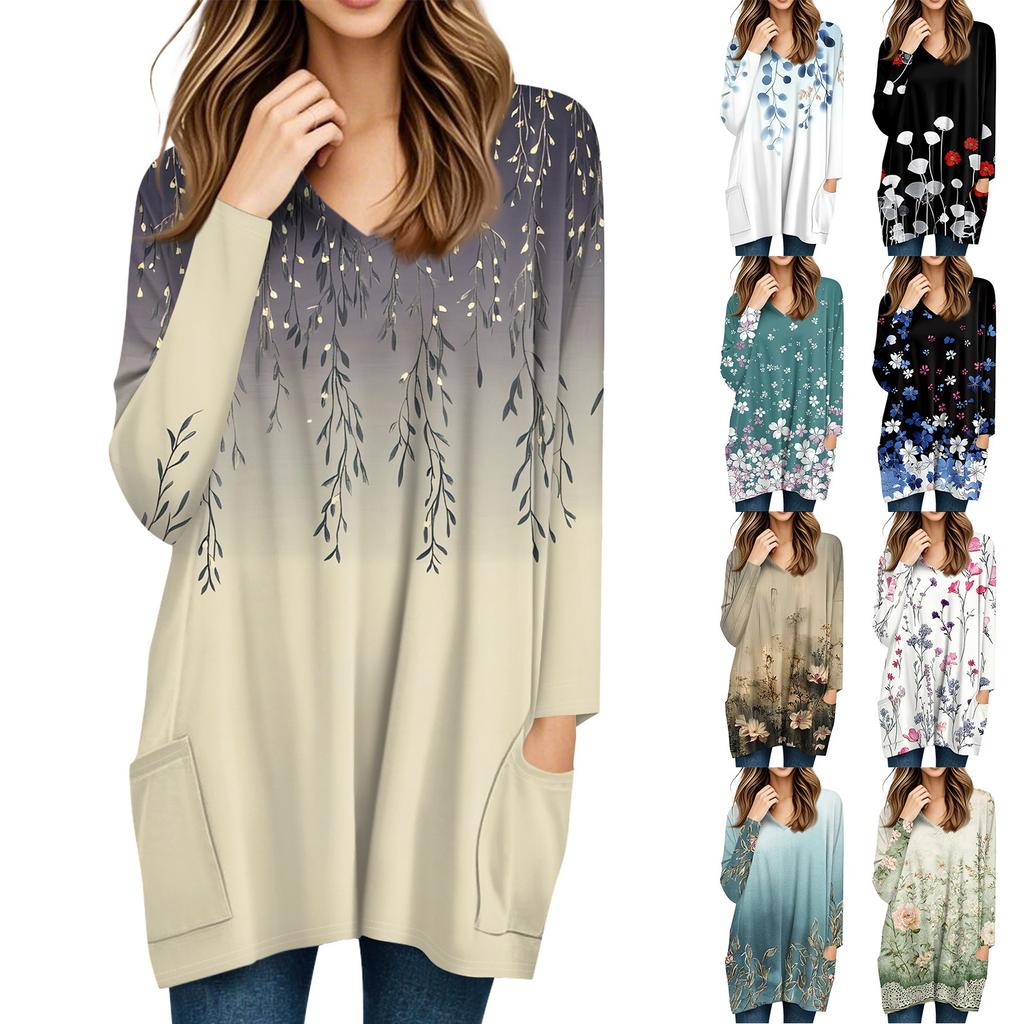 Damen Oberteile V-Ausschnitt Langarm Blusen Lässige Mittellange Hemden Mode Druck Tunika Oberteile Mit Taschen