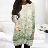 Womens Tops Round Neck Long Sleeve Blouses Casual Mid-length Shirts Fashion Print Tunic Tops With Pockets