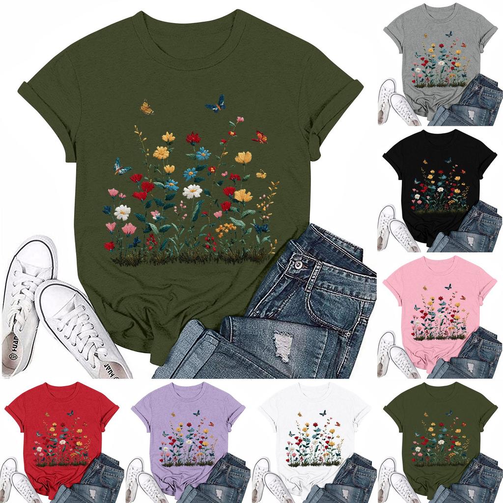 Damenmode Lässig Bedrucktes Rundhals Kurzarm T-Shirt Top T-Shirt Oberteil