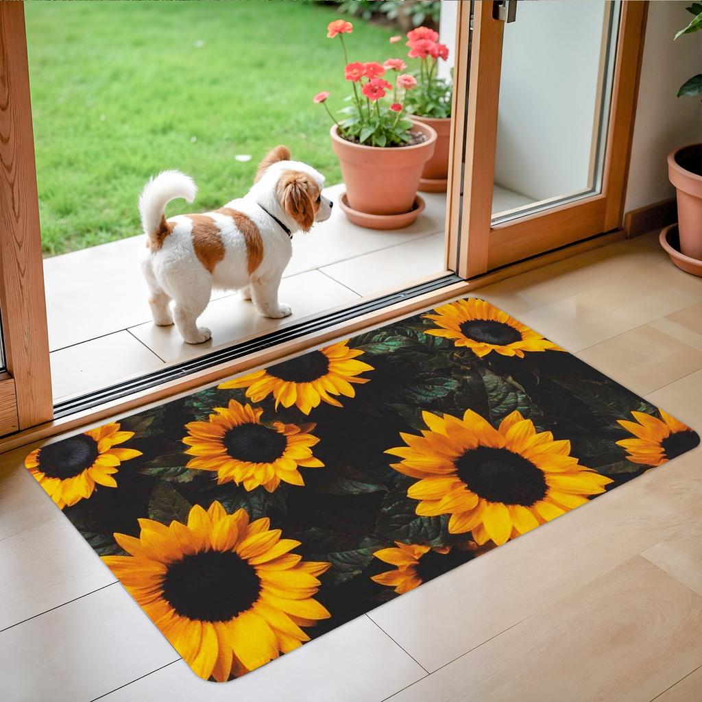 1 Stück Frühlings Sonnenblumenmuster Fußmatte Modern Küche Polyester Teppich Rutschfest Bunt Innen Teppich, Für Zuhause Badezimmer Schlafzimmer Wohnzimmer Dekor