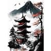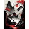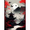Japanische Naturlandschaft Bergtempel Leinwandbild Rote Schwarze Poster Vintage Kunst Wanddrucke für Zimmer Heimdekoration